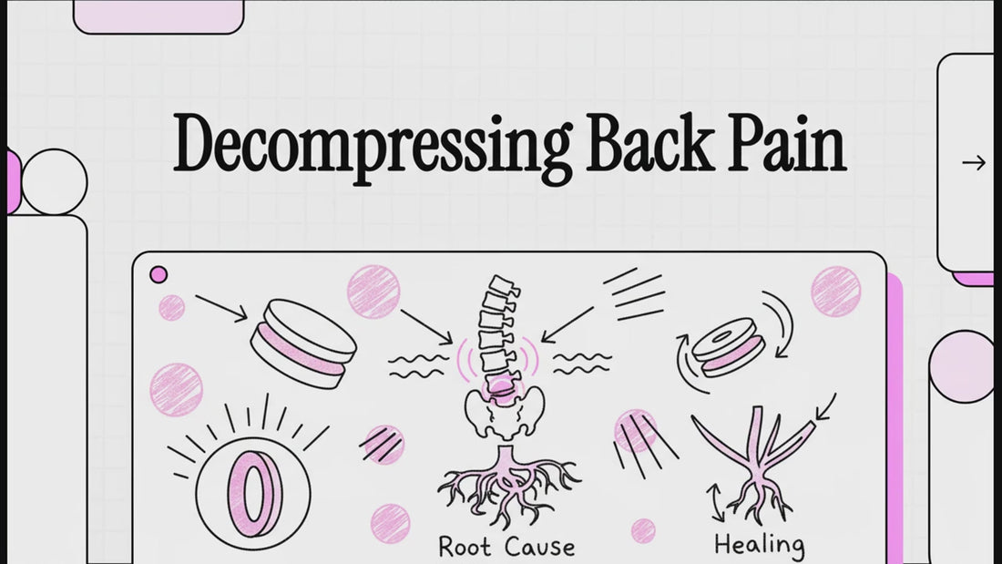 Think of it as controlled, at-home spinal decompression — combined with muscle recovery therapy.